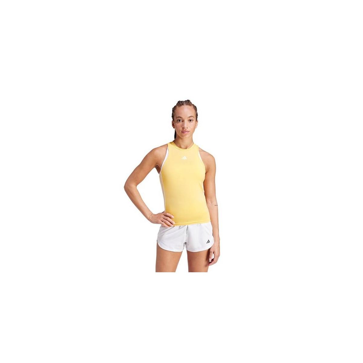 Conclusión: La camiseta Adidas TR-ES 3S amarilla para mujer es la elección perfecta para tus sesiones de entrenamiento. Con su diseño funcional, tecnología transpirable y compromiso con la sostenibilidad, te mantendrá cómoda y con estilo mientras te esfuerzas por alcanzar tus objetivos de fitness.