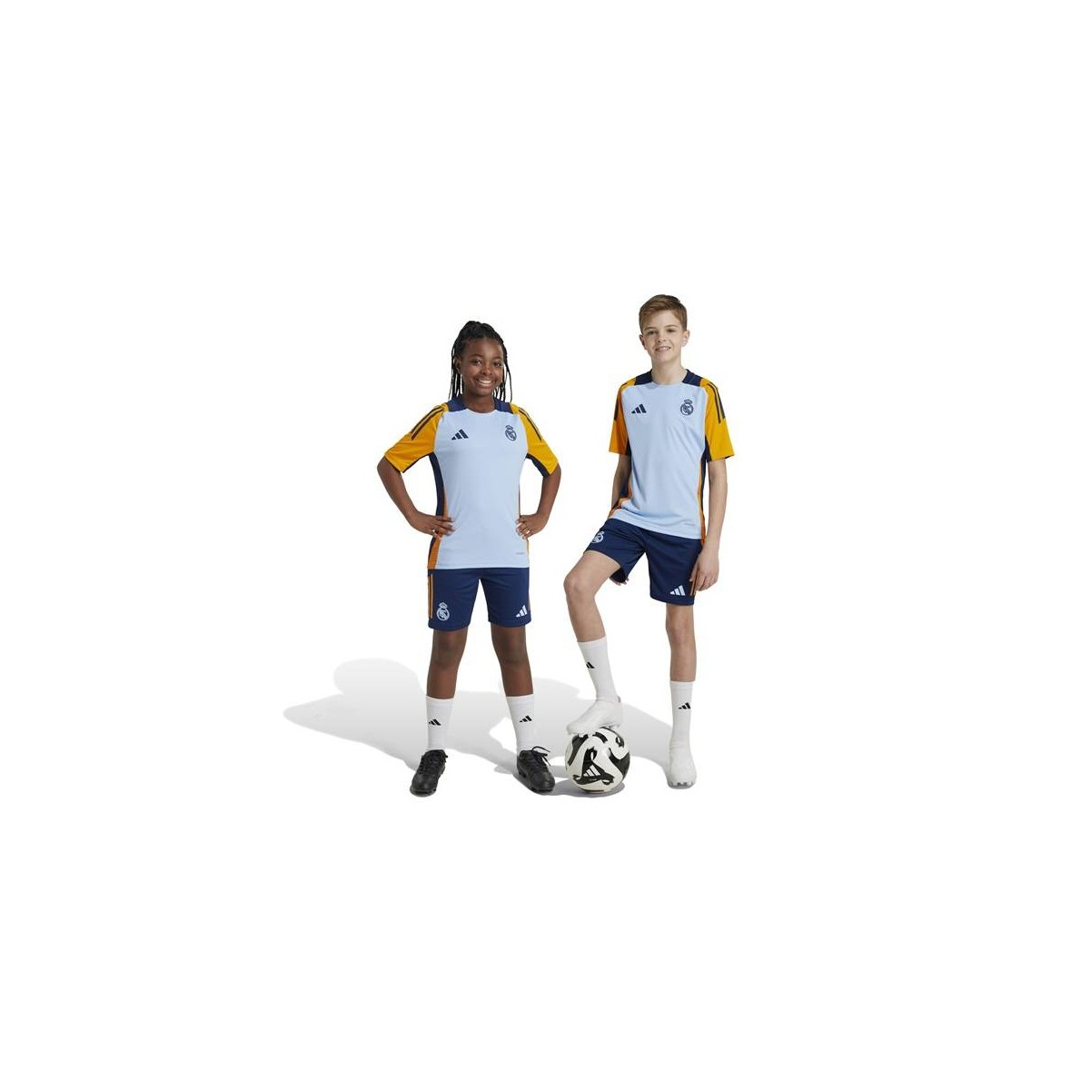 - Orgullo madridista: Escudo del Real Madrid y logotipo adidas visibles.